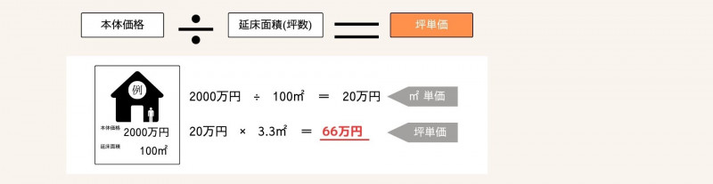 100㎡の家が2000万円だったら、2000万円 ÷ 100 = 20万円(㎡単価)
